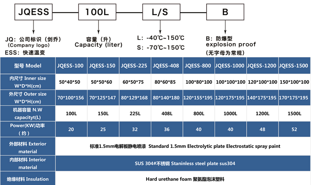 • 快速溫變試驗箱型號命名說明 及 參數表